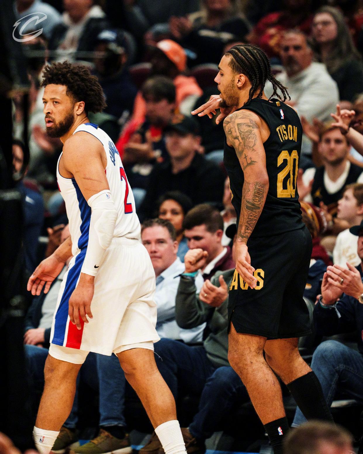 首节开打,泰森上篮得手,杜伦4罚2中,阿伦勾手打进。莫布里篮下取分,哈登轰进3分球,骑士打出了9比2的开局,活塞请求暂停。哈里斯抛投三不沾,坎宁安跳投打进,克利夫兰连续外线不中,泰森大帽坎宁安。泰森抛投取分,杜伦上篮得手,邓恩罗宾逊轰进3分球,杜伦暴扣,活塞打出了9比2的攻势。莫布里2罚全中,坎宁安单打取分还以颜色,阿伦、哈登与奥萨尔在禁区斗法。